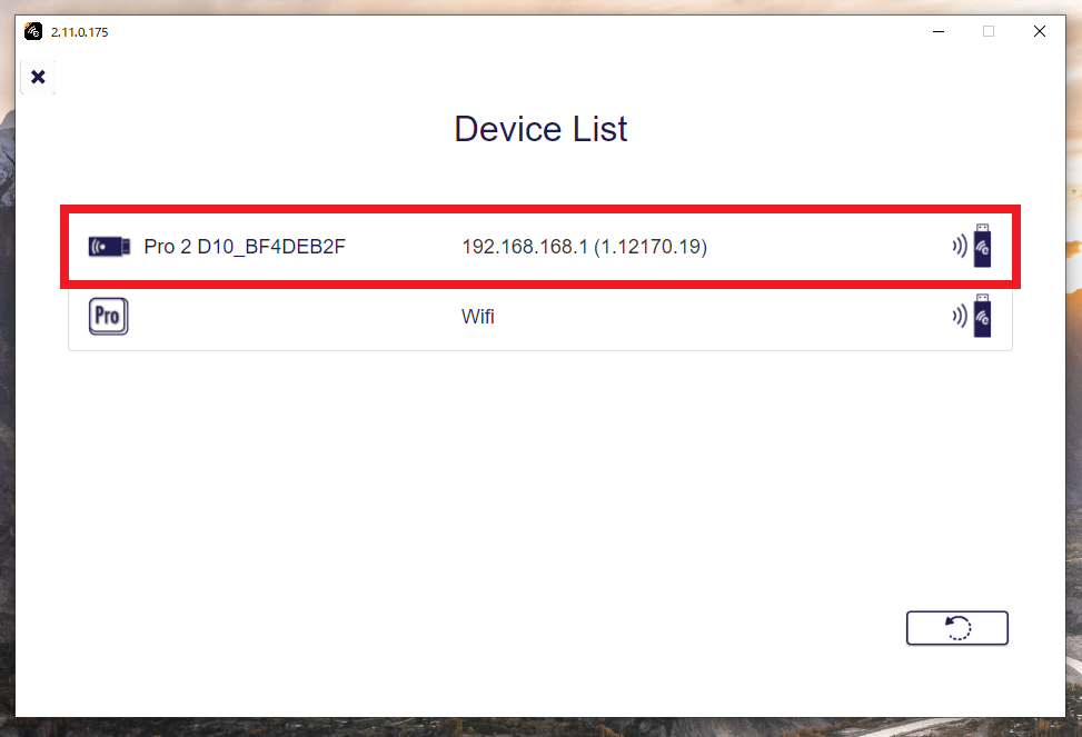 「Device List」(デバイス一覧)画面が表示されたら、映像投影先として使用するEZCastPro本体の項目をダブルクリックしてください。