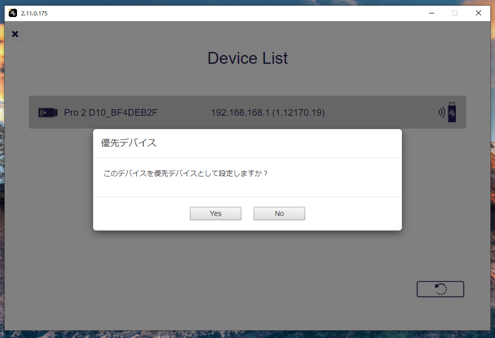 「優先デバイスとして設定しますか?」と質問が表示される場合があります。EZCastPro本体を複数設置していない場合は「Yes」を選択することで、次回から質問を非表示にできます。