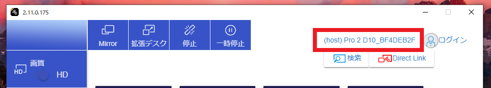 「4」の操作を完了することで、「検索」ボタンの上部に投影先として指定したEZCastPro本体の名前が表示されることをご確認ください。
