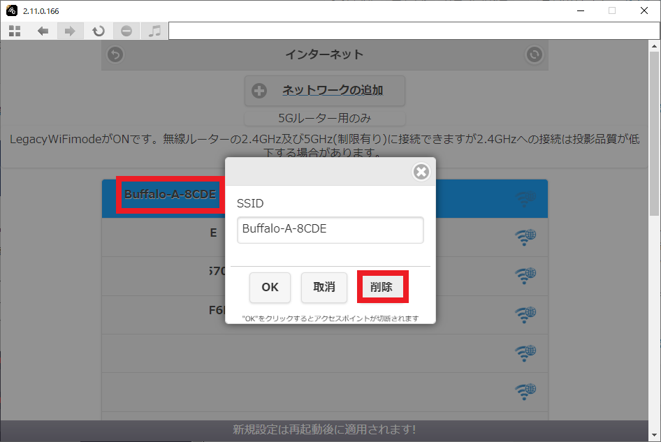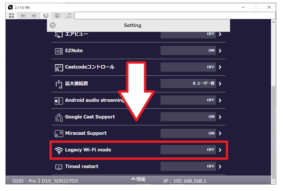 手順3.「Legacy Wi-Fi mode」設定画面が表示されます。