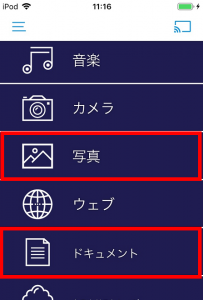 ③スマートフォンの「EZCastPro」アプリの「写真」および「ドキュメント」