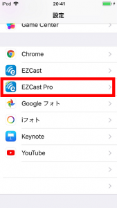 手順2.「設定」画面を下にスクロールして「EZCastPro」項目を探して選択します。