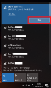 パソコンのWi-Fiの機能は無効化しないでください。Miracastを開始するにはWi-Fiの機能が有効化されている必要があります。パソコンが自動的に既存の無線ルーターとWi-Fi接続を開始する場合は、接続中の無線ルーターのWi-Fiネットワークの「切断」を選択してください。