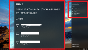 ※この画面に「お使いのPCまたはモバイルデバイスではMiracastがサポートされていないため、ワイヤレスでプロジェクションを行うことはできません。」と表示されている場合はお使いのパソコン本体がMiracast接続による映像投影に対応していません。